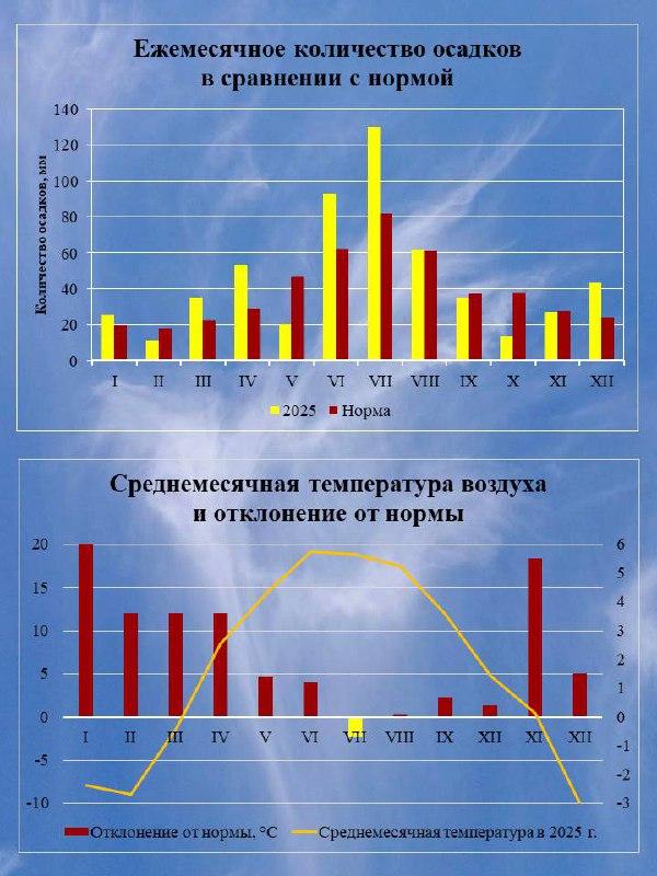 В течение всего 2025 года температура воздуха превышала средние показатели на 0,1–6,0 градусов. Лишь в июле было зафиксировано отклонение в минус 0,7 градуса.