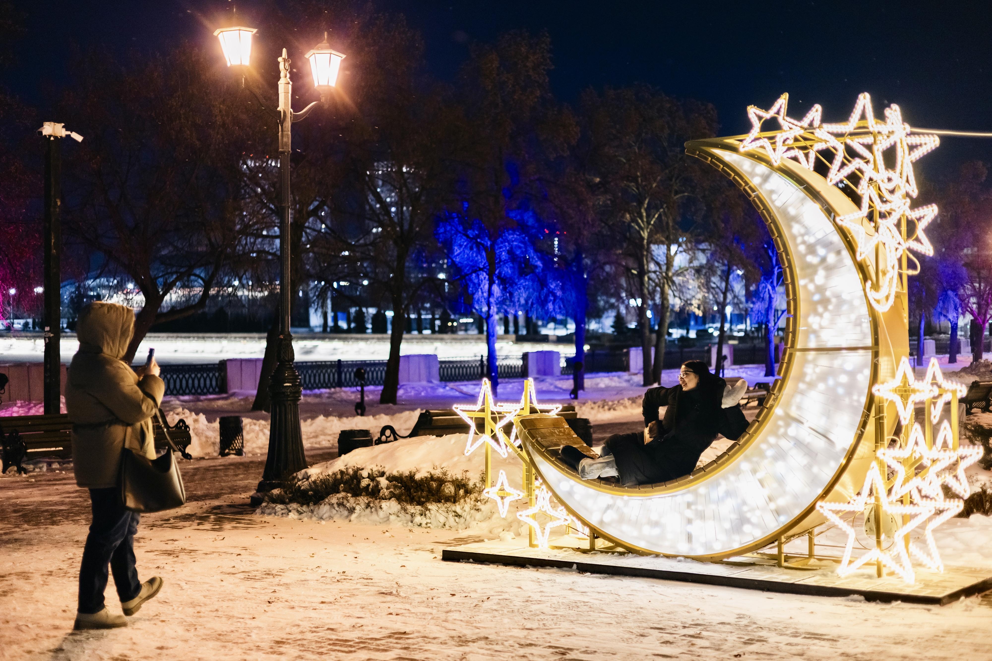 До Нового года остаётся меньше четырнадцати дней, и Челябинск уже заметно преображается. На витринах магазинов и у входов в здания появляются праздничные украшения, а вечерние улицы озаряются огнями гирлянд. Фотокорреспонденты совершили прогулку по городу, чтобы запечатлеть это преображение и создать новогоднее настроение.