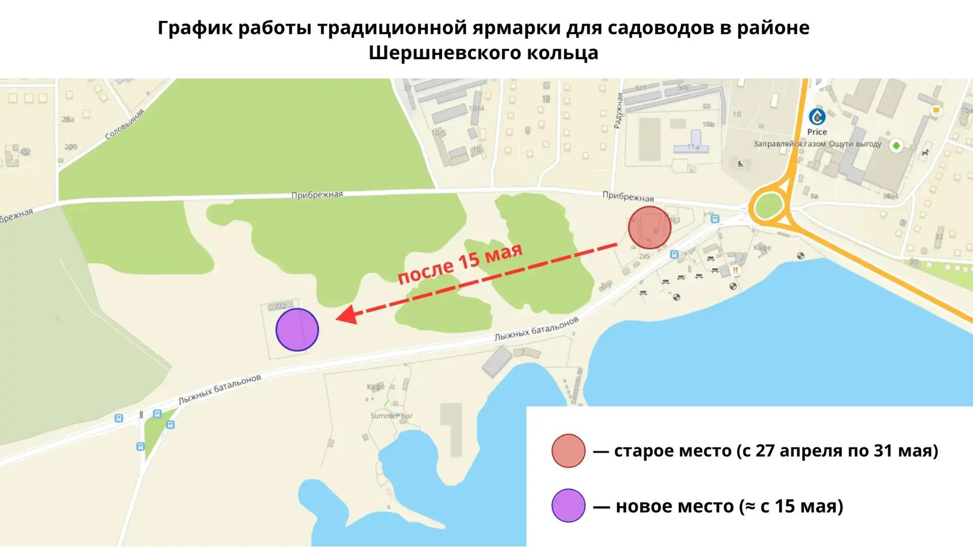 В мэрии пояснили: «До 31 мая для продажи рассады и растений будет предоставлена площадка на Прибрежной, 1. Параллельно для организации ярмарки готовится новая, более комфортная торговая площадка на улице Лыжных батальонов (в районе здания 7/2). После официального открытия вся торговля будет перенесена туда, а на участке возле кольца на Шершневском водохранилище начнется реализация проекта по расширению дороги».