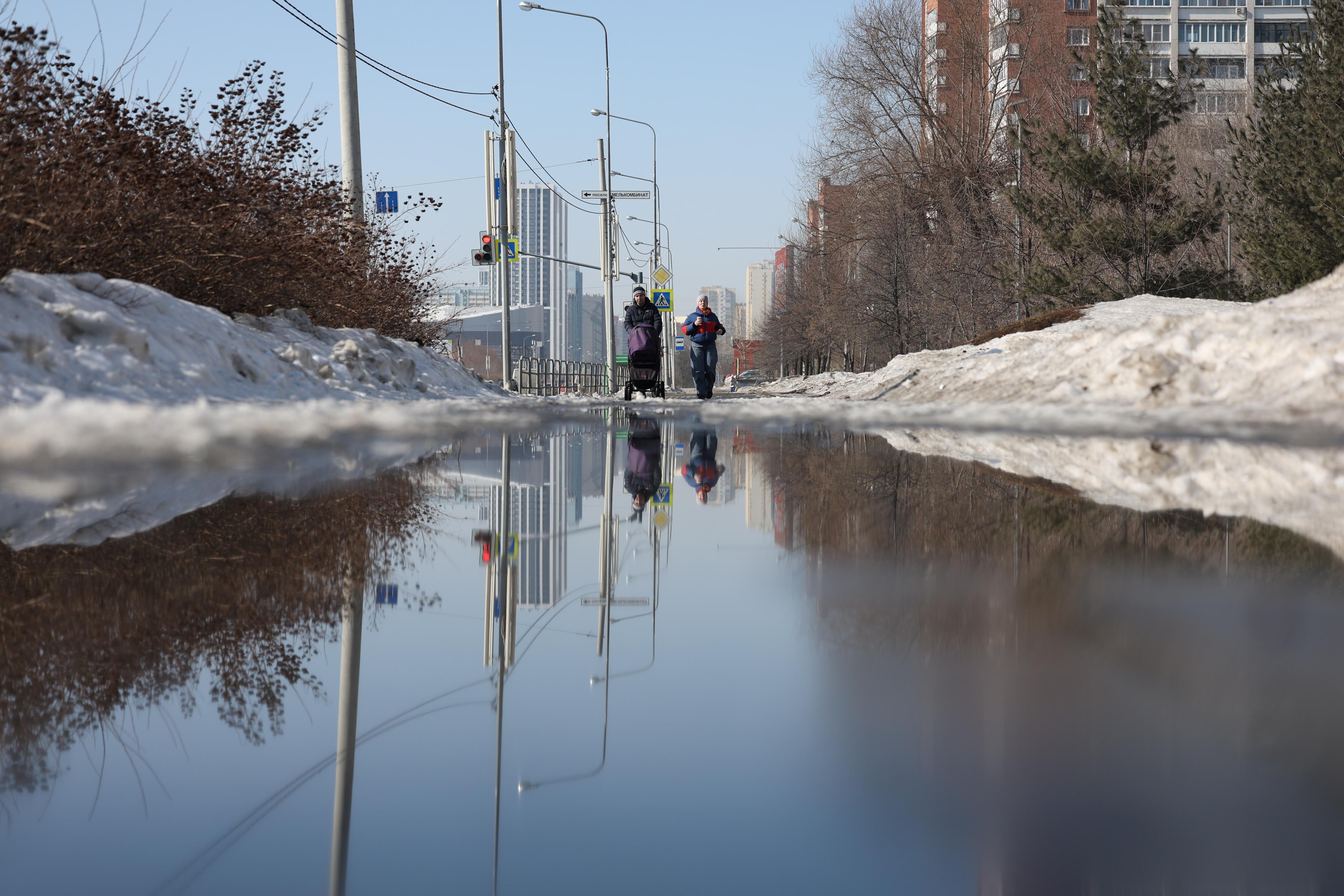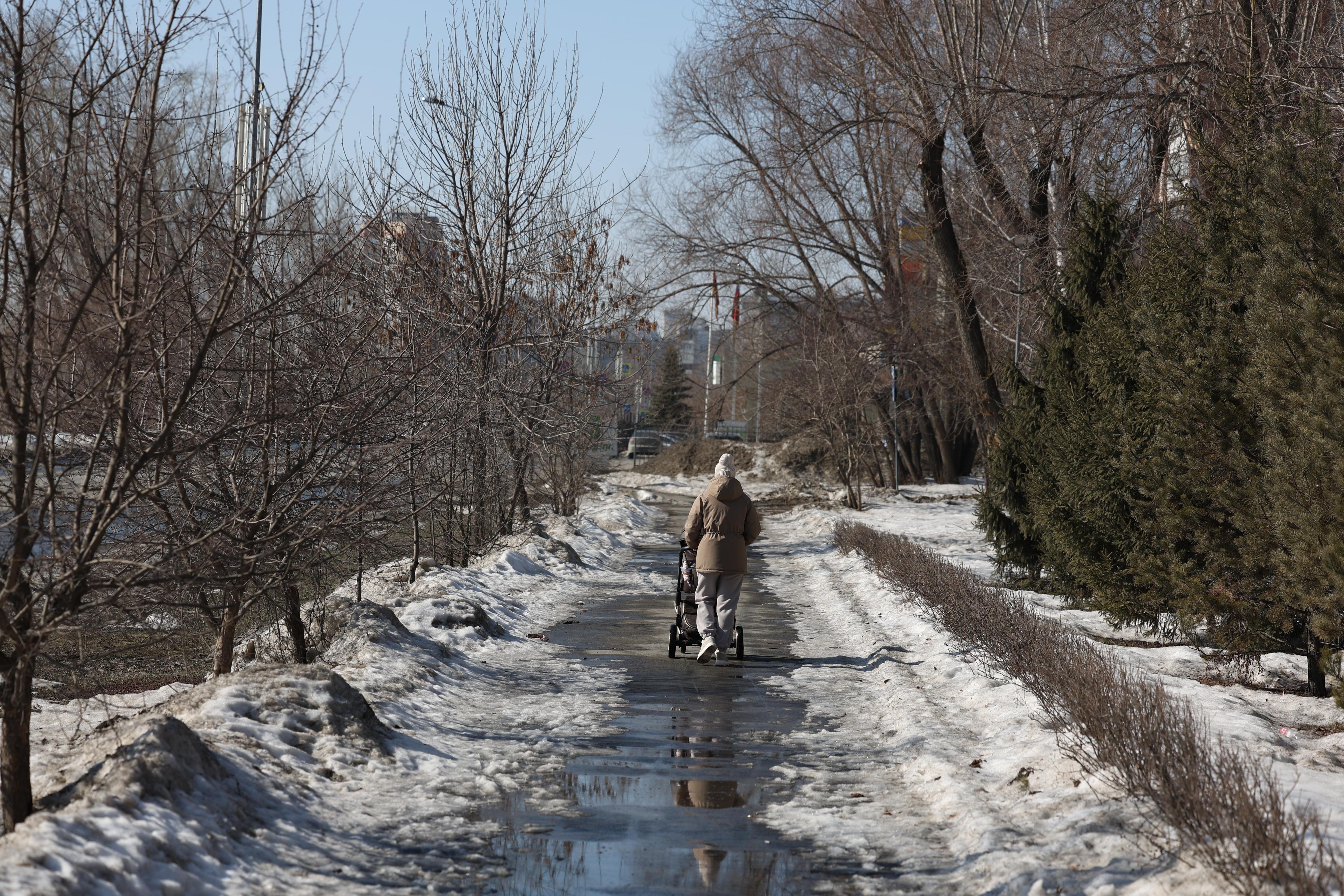 С приходом весны пешеходные зоны Челябинска превратились в сложную полосу препятствий. Если с дорогами городские службы справляются, то тротуары, парки и скверы покрыты смесью тающего снега, льда и воды, что создает риск падений.