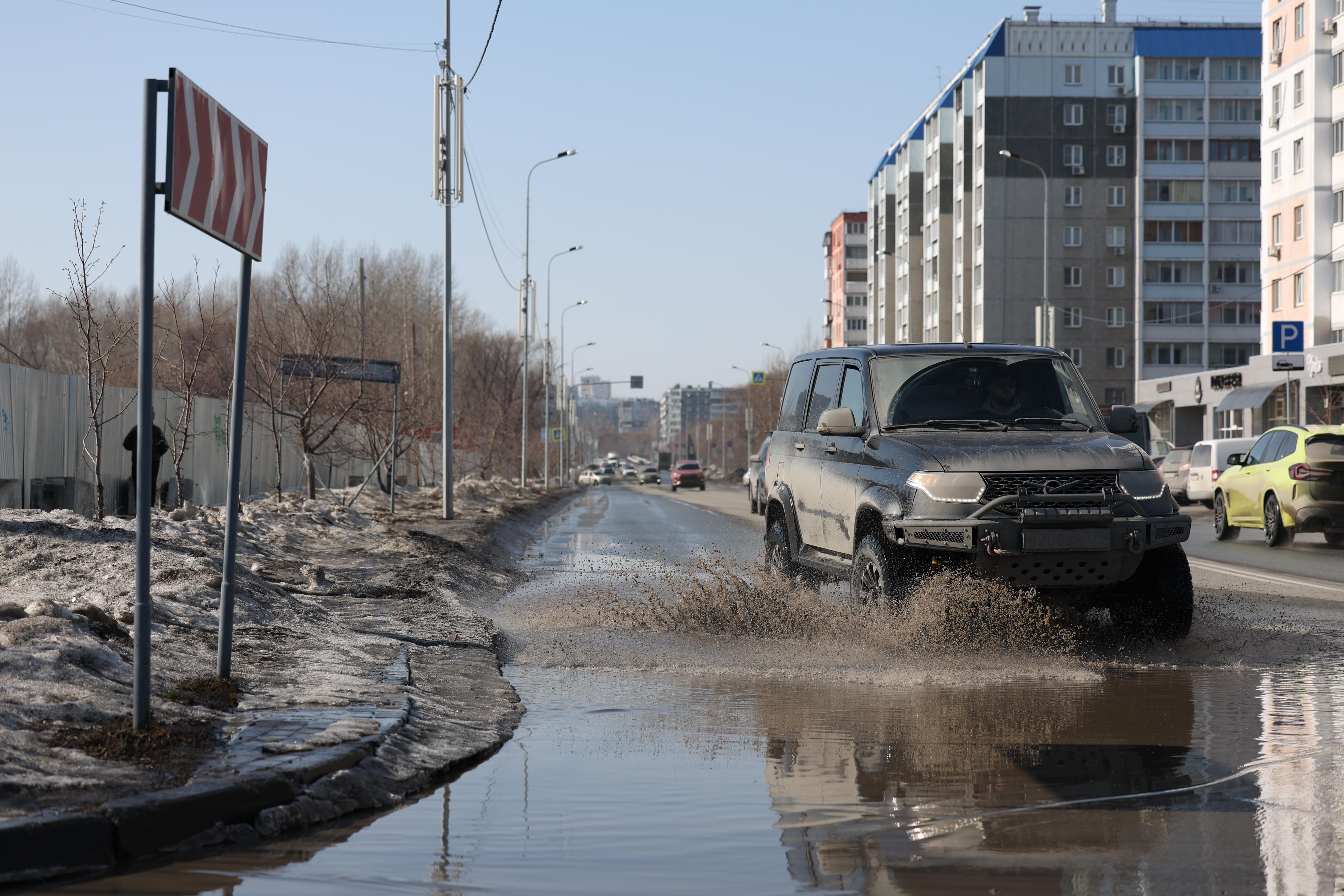 Весна в Челябинске: парки и тротуары стали полосой препятствий