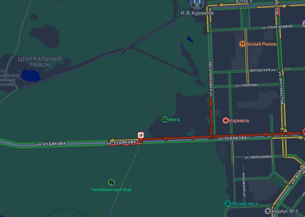 В пятницу, 6 марта, в вечернее время на улице Худякова в Челябинске зафиксировано массовое дорожно-транспортное происшествие. По предварительным сведениям, столкнулись три машины, что привело к перекрытию проезда в направлении плотины.