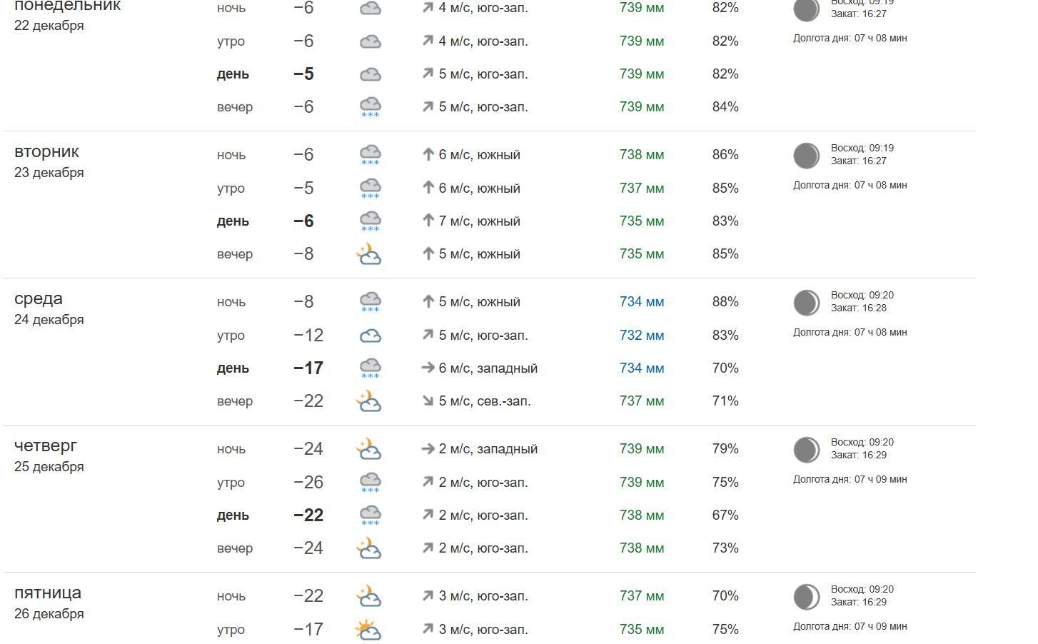 Другие прогностические сервисы указывают на ещё более низкие ночные температуры.